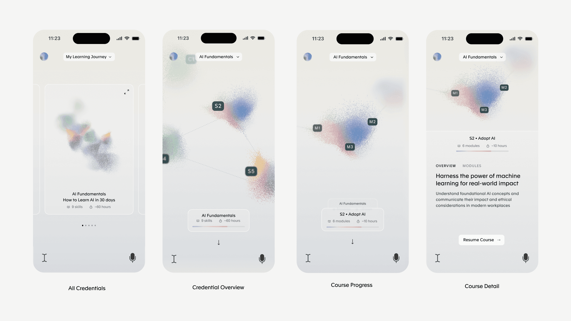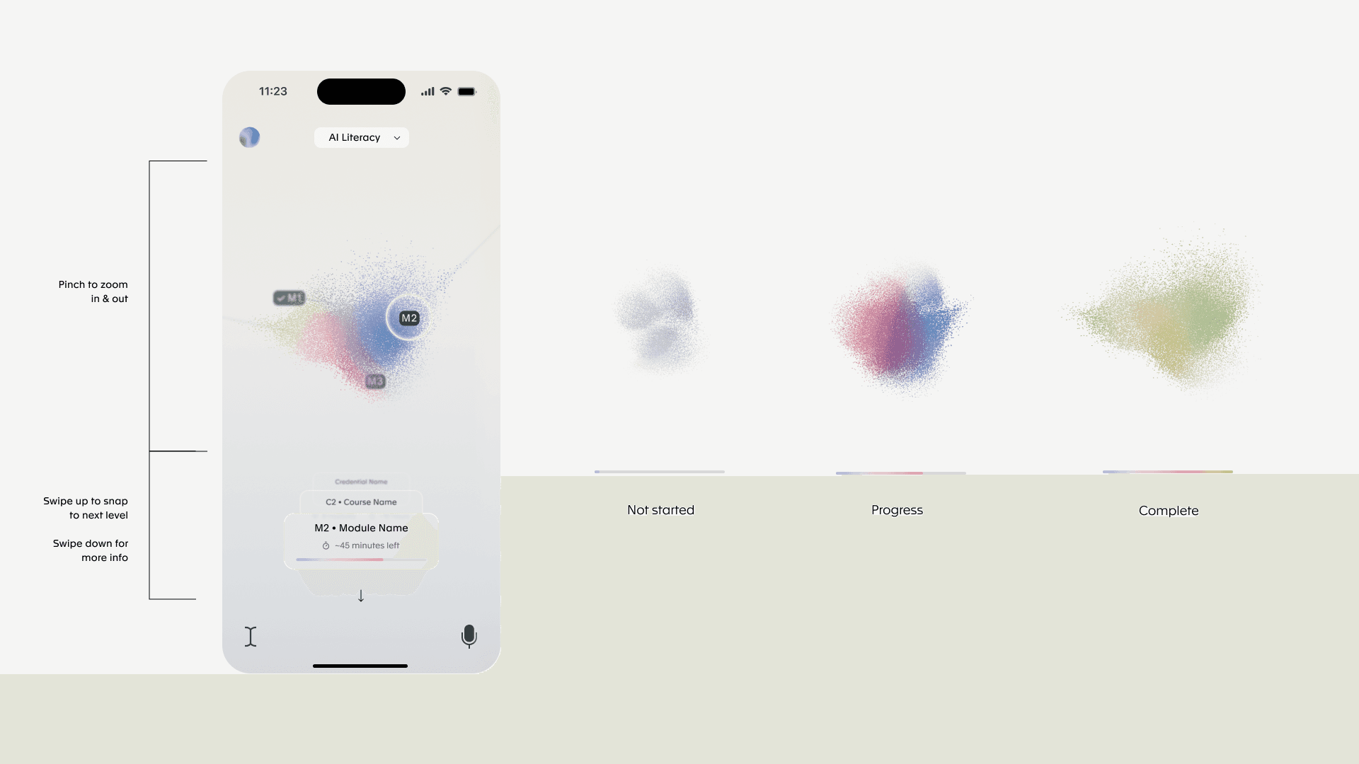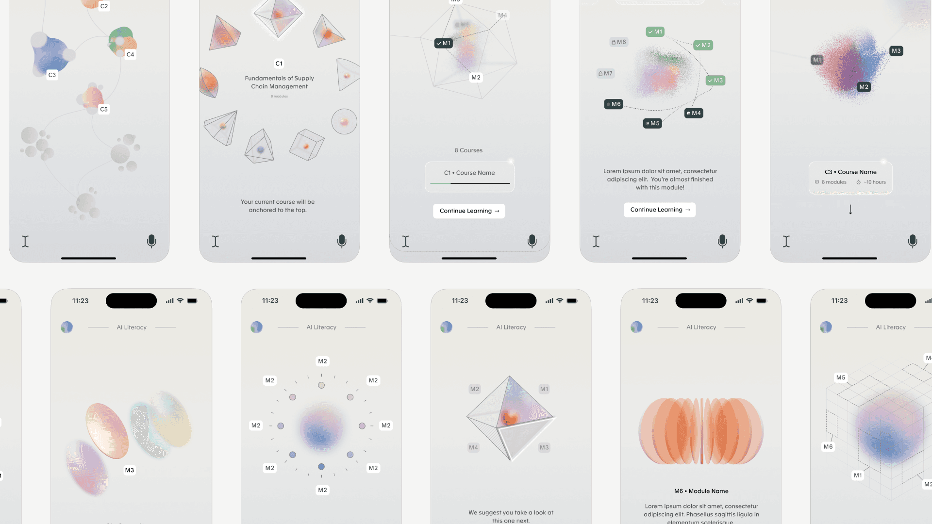 We reimagined the typical course format as a fluid, nonlinear system—more like a living map than a checklist. Each learner’s journey adapts to their pace, preferences, and curiosity, encouraging reflection, detours, and revisiting concepts. The interface used visual metaphors and modular elements to help users build connections between ideas organically, without the pressure of forced progression.